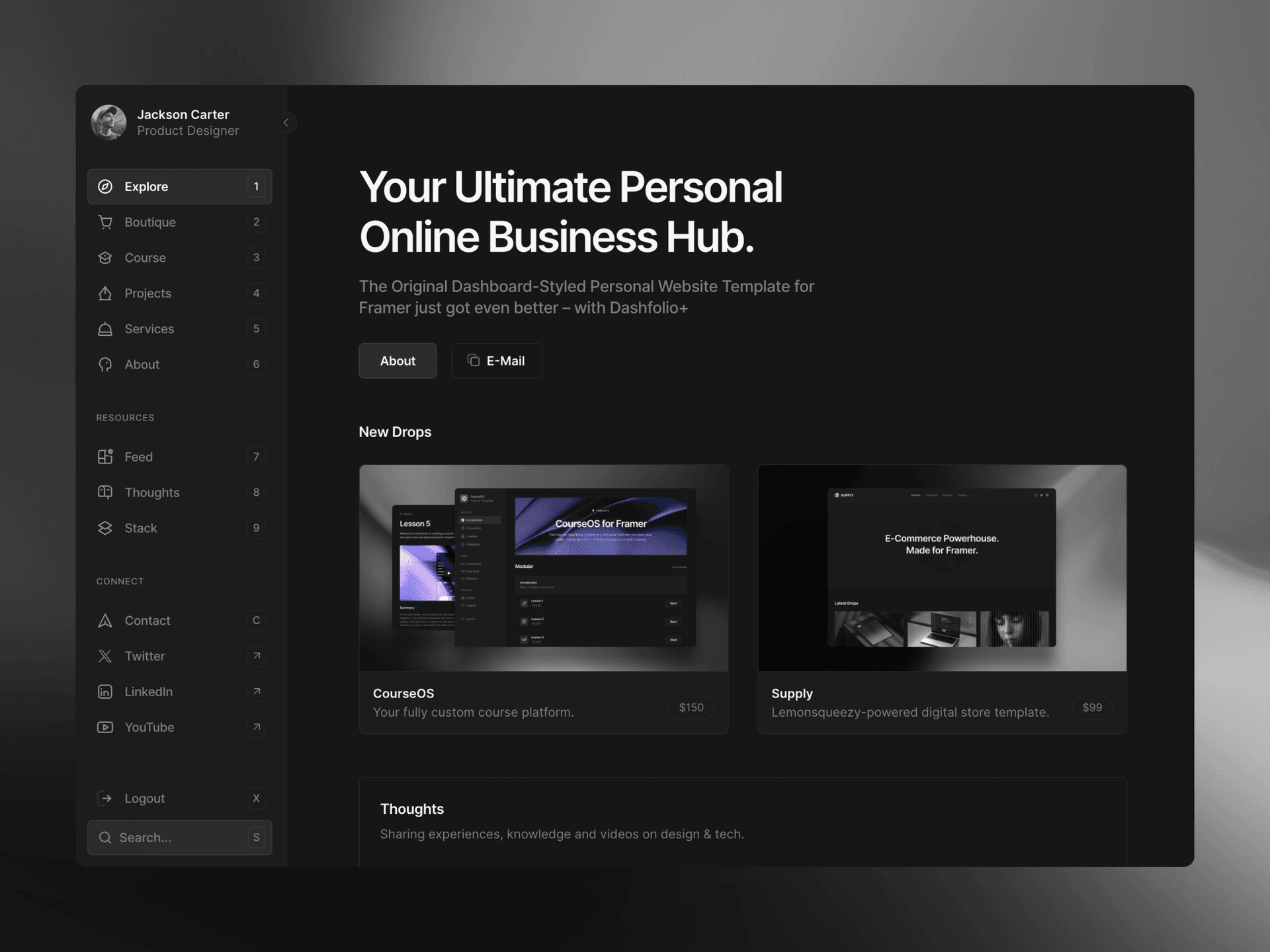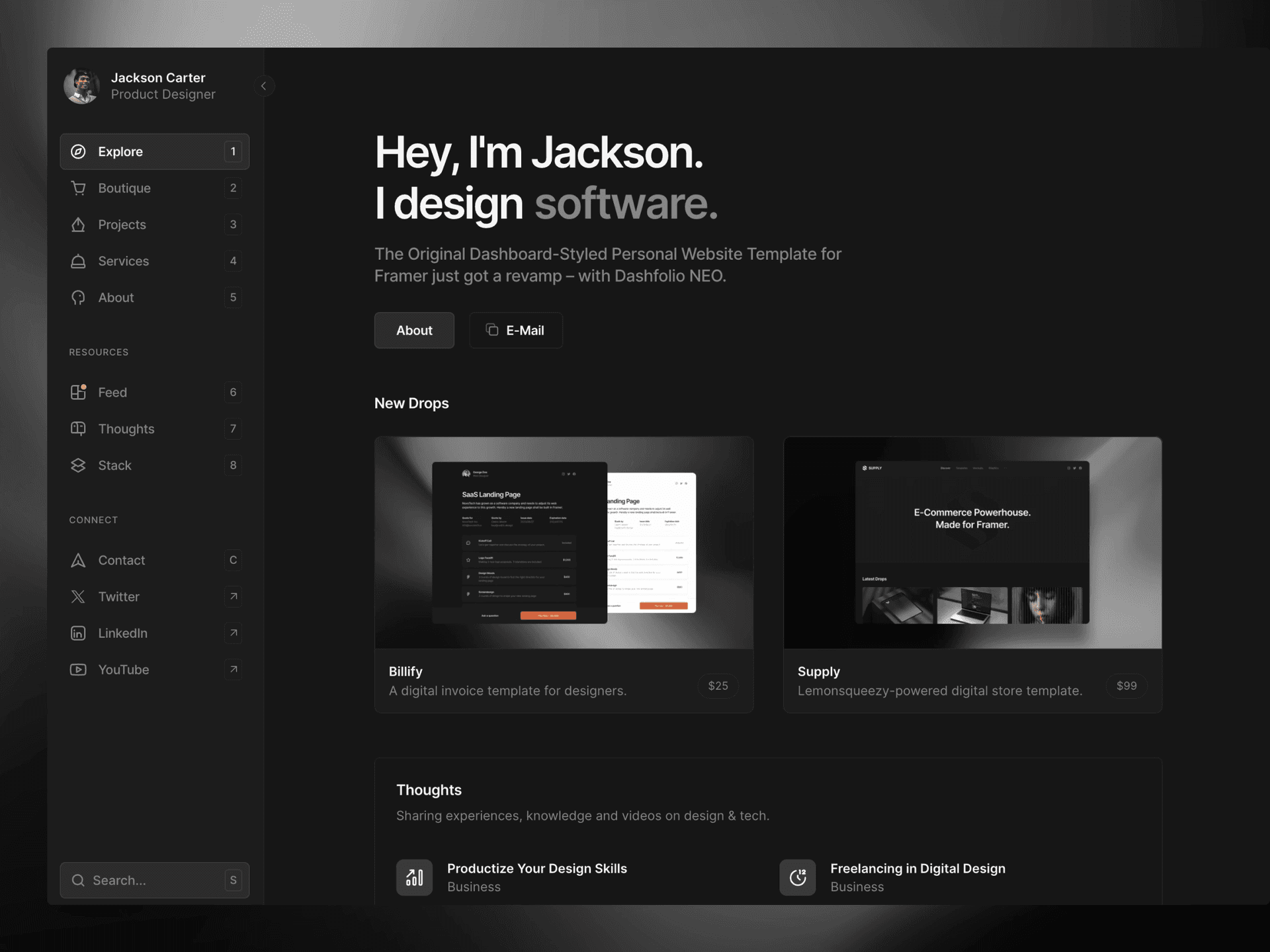 Curated Framer portfolio templates for personal and agency portfolio websites.
