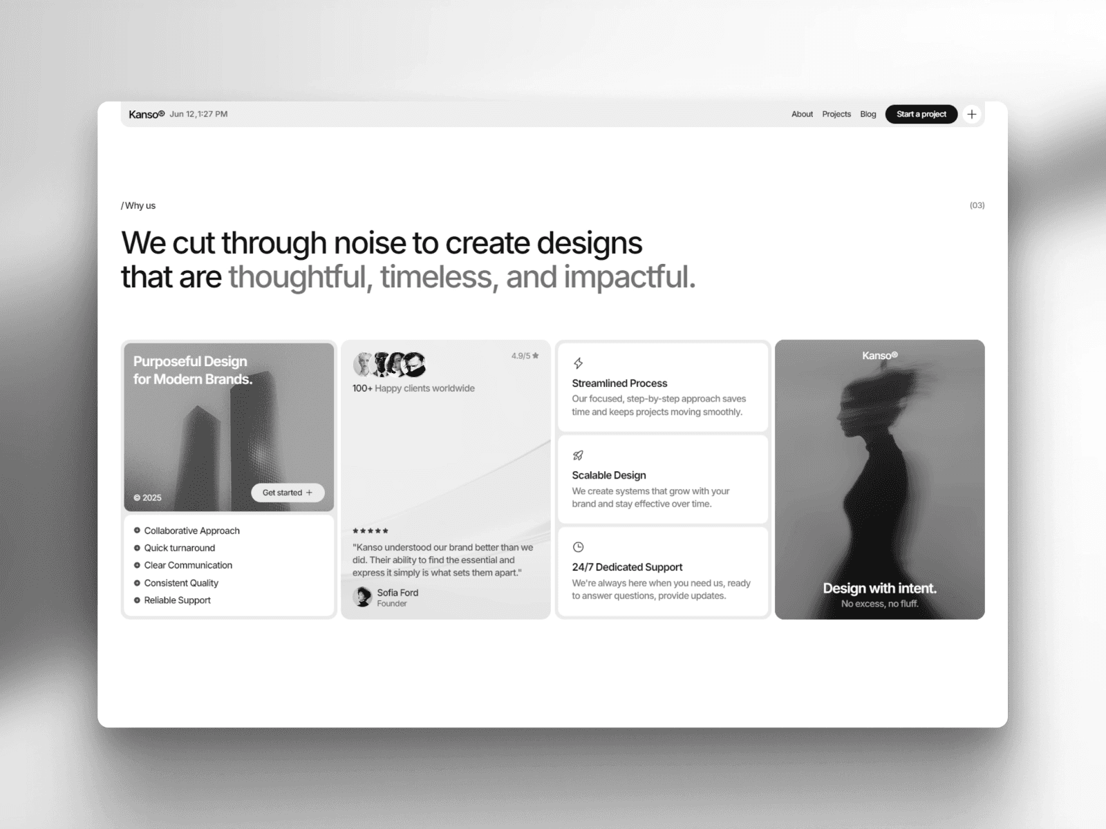 Kanso is a premium template for design agencies and creative studios that value clarity, precision, and timeless aesthetics. It balances clean typography, structured layouts, and smooth animations to deliver a seamless user experience.